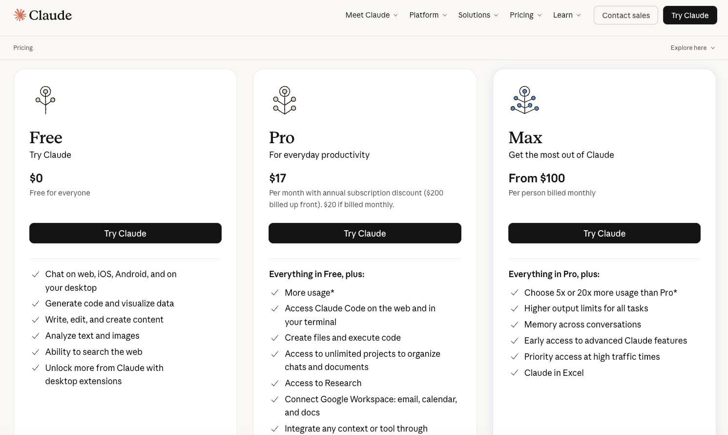 - Pick Pro, then choose the Monthly billing. You can upgrade later if you keep hitting the usage limits on Claude Code.