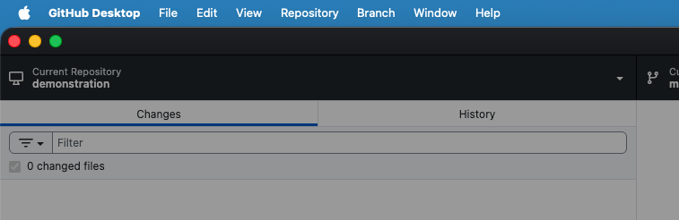 Now you'll see the folder as the name of the "Current Repository" in the Github Desktop main window.