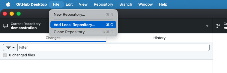 - Connect a folder (“Add Local Repository”) for Claude Code to GitHub Desktop